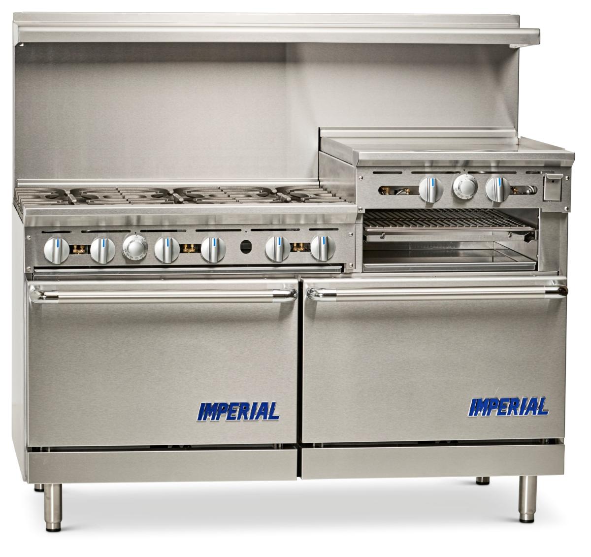 Fourneau 6 feux vifs, plaque à snacker lisse de 610 mm surélevée sur 2 fours à gaz de 10kW